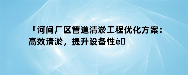 「河间厂区管道清淤工程优化方案:高效清淤,提升设备性能」