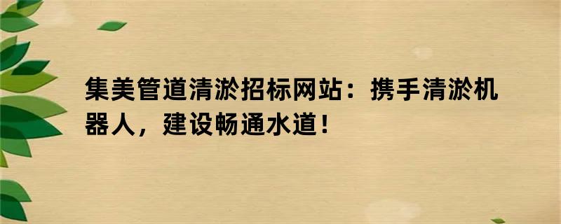 集美管道清淤招标网站:携手清淤机器人,建设畅通水道!