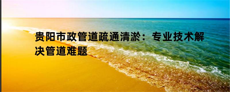 贵阳市政管道疏通清淤:专业技术解决管道难题