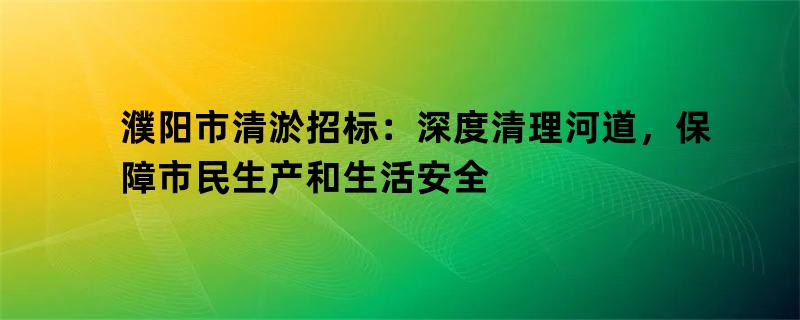濮阳市清淤招标:深度清理河道,保障市民生产和生活安全