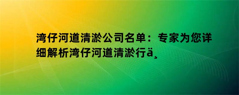 湾仔河道清淤公司名单:专家为您详细解析湾仔河道清淤行业大全,深入探讨了湾仔河道清淤行业的各种现状以及清淤公司的服务类型和特点。本文通过对湾仔河道清淤行业的研究,可以为需要清淤服务的客户提供清晰明了的指引和有效的建议。