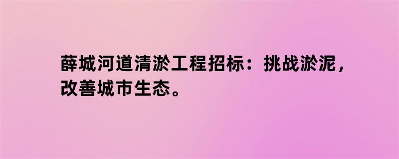 薛城河道清淤工程招标:挑战淤泥,改善城市生态。