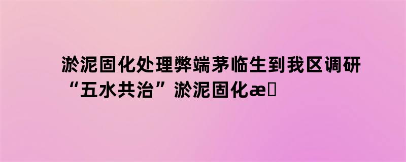淤泥固化处理弊端茅临生到我区调研“五水共治”淤泥固化措置获点赞
