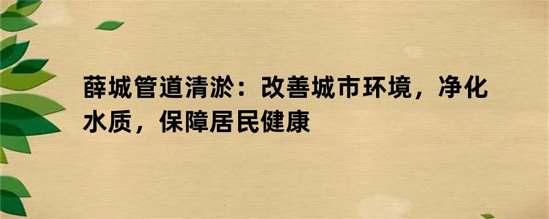 薛城管道清淤:改善城市环境,净化水质,保障居民健康