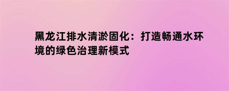 黑龙江排水清淤固化:打造畅通水环境的绿色治理新模式