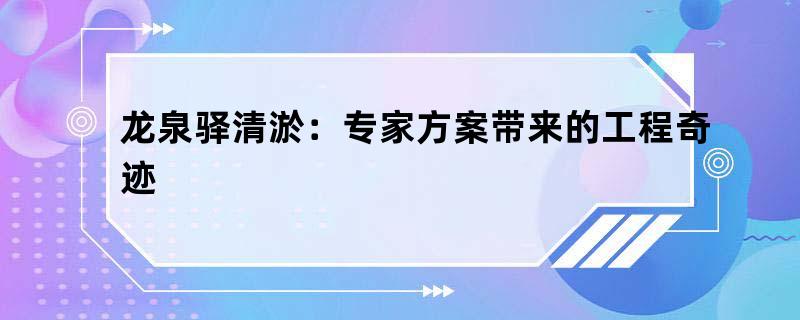 龙泉驿清淤:专家方案带来的工程奇迹