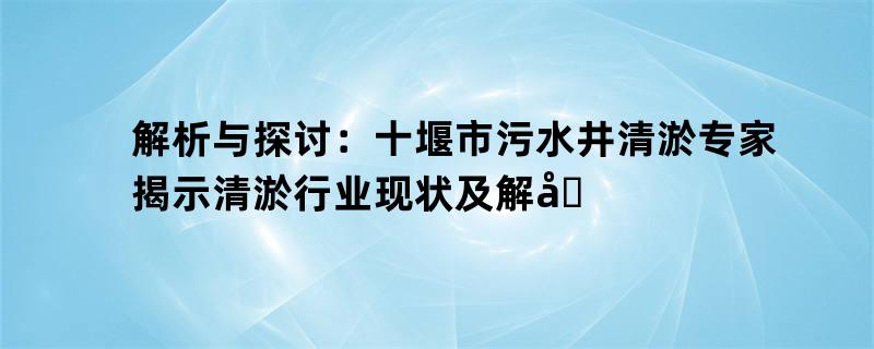 解析与探讨:十堰市污水井清淤专家揭示清淤行业现状及解决之道
