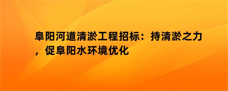 阜阳河道清淤工程招标:持清淤之力,促阜阳水环境优化