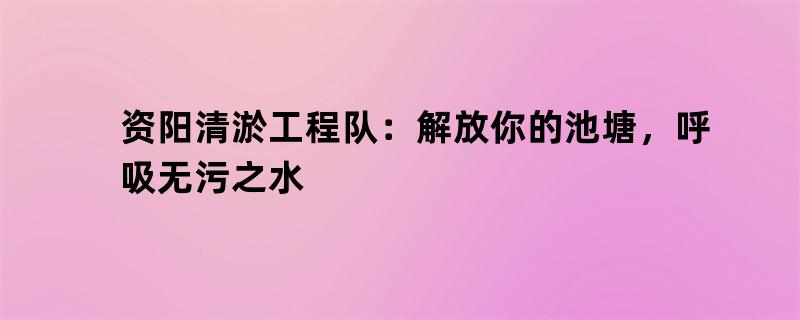 资阳清淤工程队:解放你的池塘,呼吸无污之水