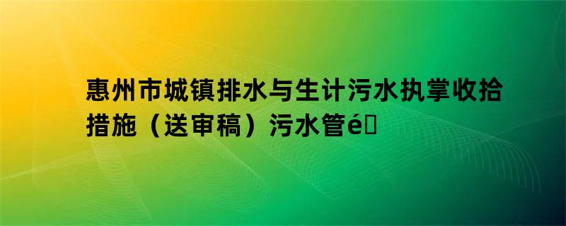 惠州市城镇排水与生计污水执掌收拾措施(送审稿)污水管道清理方案