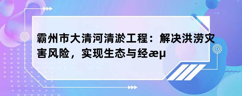 霸州市大清河清淤工程旨在解决洪涝灾害风险,同时实现生态与经济的双赢。本文将从多个方面详细阐述这一工程的意义和作用。