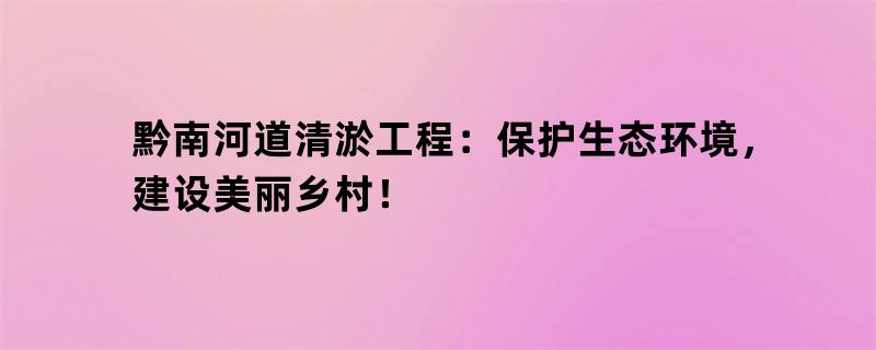 黔南河道清淤工程:保护生态环境,建设美丽乡村!