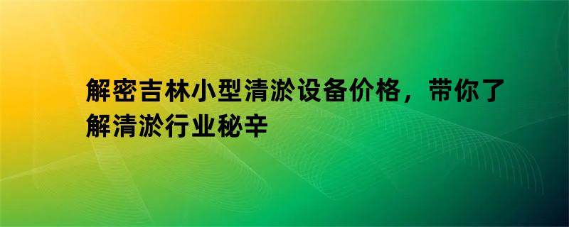 本文主要介绍了吉林小型清淤设备价格的解密和清淤行业的秘辛。在介绍吉林小型清淤设备的价格之前,本文简要介绍了清淤行业的背景信息,为读者提供了必要的背景知识。本文重点讲解了吉林小型清淤设备的价格及其背后的一些秘密,同时,也对清淤行业中存在的问题进行了探讨和分析。