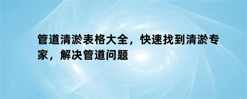 管道清淤表格大全,快速找到清淤专家,解决管道问题