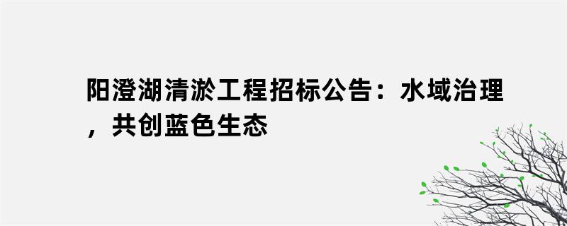 阳澄湖清淤工程招标公告:水域治理,共创蓝色生态