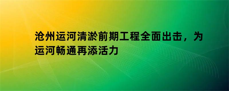 沧州运河清淤前期工程全面出击,为运河畅通再添活力