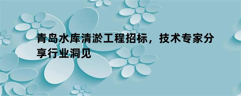青岛水库清淤工程招标,技术专家分享行业洞见