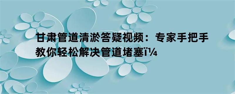 甘肃管道清淤答疑视频:专家手把手教你轻松解决管道堵塞!