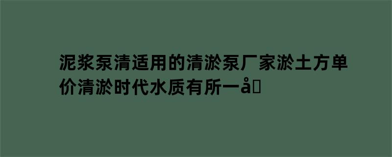 泥浆泵清适用的清淤泵厂家淤土方单价清淤时代水质有所一再