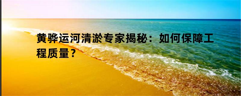 黄骅运河清淤专家揭秘:如何保障工程质量?