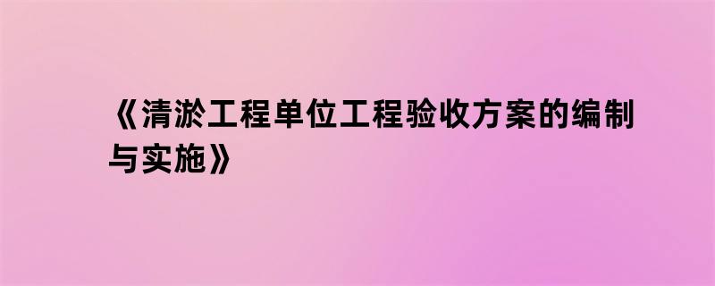 《清淤工程单位工程验收方案的编制与实施》