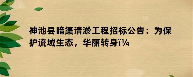 神池县暗渠清淤工程招标公告正式发布。该项目的实施旨在保护流域生态,使得神池县华丽转身,实现清淤工程的全面启动。下面将详细介绍这个项目的主要内容。