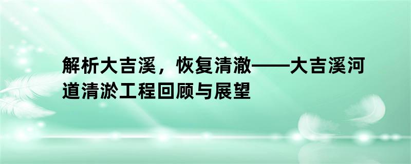 解析大吉溪,恢复清澈——大吉溪河道清淤工程回顾与展望
