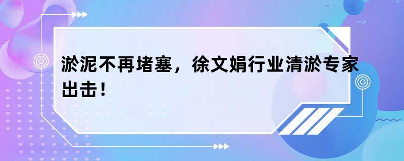 淤泥不再堵塞,徐文娟行业清淤专家出击!