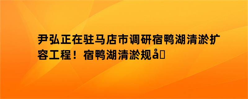 尹弘正在驻马店市调研宿鸭湖清淤扩容工程!宿鸭湖清淤规划