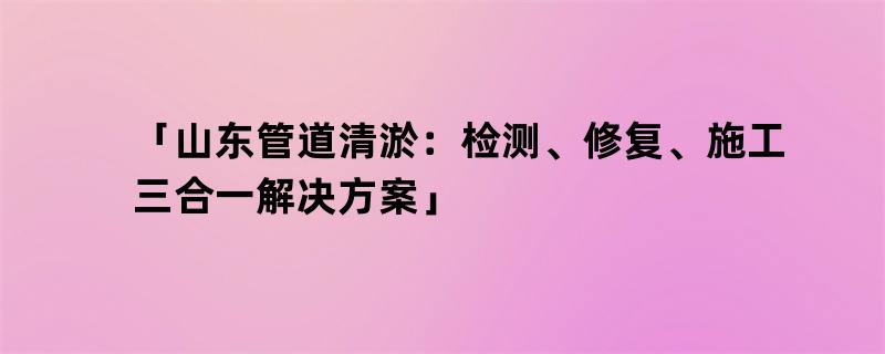 「山东管道清淤:检测、修复、施工三合一解决方案」