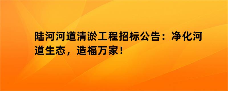 陆河河道清淤工程招标公告:净化河道生态,造福万家!
