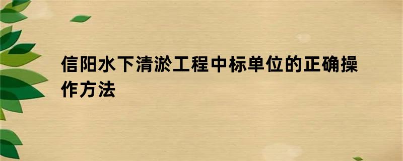 信阳水下清淤工程中标单位的正确操作方法