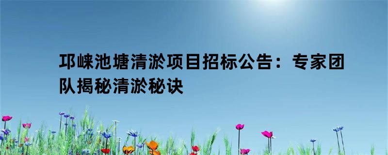 邛崃池塘清淤项目招标公告:专家团队揭秘清淤秘诀,是一篇关于池塘清淤的专业文章。本文为读者介绍邛崃池塘清淤项目招标公告,并列举清淤的重要性。专家团队将揭秘清淤秘诀,为读者带来更多的知识和启迪。