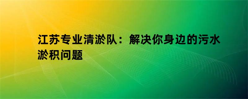 江苏专业清淤队致力于解决你身边的污水淤积问题,通过先进的技术和专业的团队,为社会创造更加清洁、舒适的环境。本文将从技术、施工、服务、产品四个方面,深入阐述江苏专业清淤队的优势与特点,以及对于环境和经济的积极贡献。