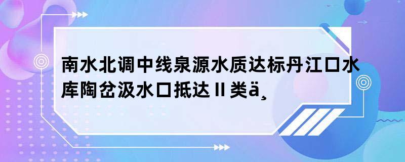 南水北调中线泉源水质达标丹江口水库陶岔汲水口抵达Ⅱ类丹江口水库清淤