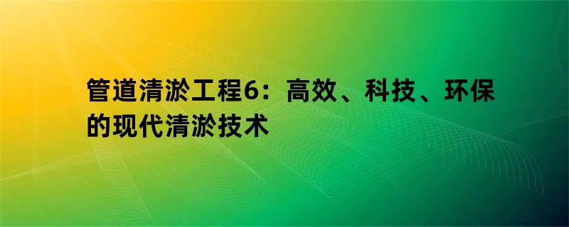 管道清淤工程6:高效、科技、环保的现代清淤技术是当今管道清淤领域的重要发展方向。本文将详细介绍这种现代清淤技术的核心特点和优势,通过分析其科学性、高效性和环保性等方面的内容,让读者了解现代管道清淤技术的优越性,引发读者对于该领域的深入关注。
