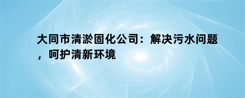 大同市清淤固化公司:解决污水问题,呵护清新环境