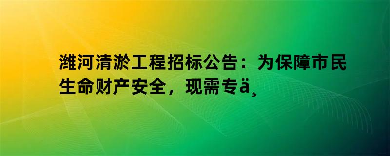 潍河清淤工程招标公告:为保障市民生命财产安全,现需专业清淤公司进行潍河清淤工程。详情请见公告。
