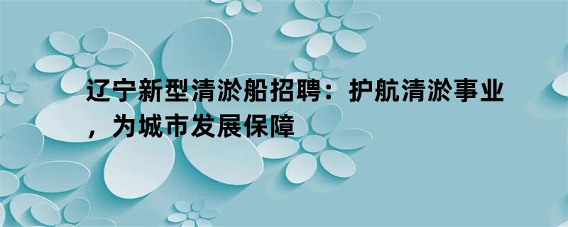辽宁新型清淤船招聘:护航清淤事业,为城市发展保障