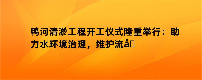 鸭河清淤工程开工仪式隆重举行:助力水环境治理,维护流域生态