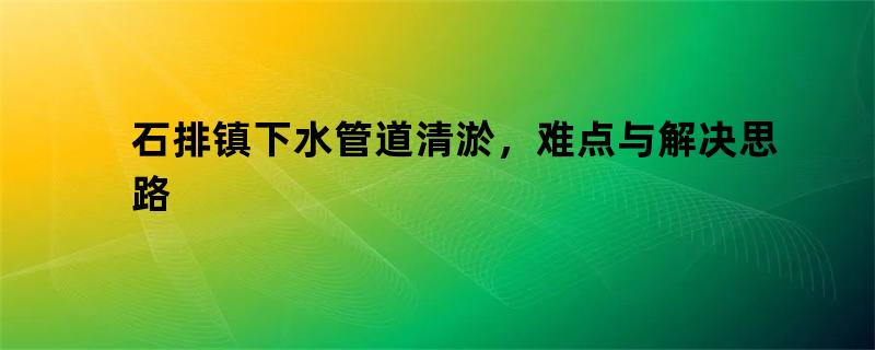 石排镇下水管道清淤,难点与解决思路