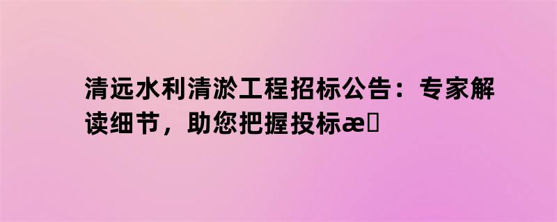清远水利清淤工程招标公告:专家解读细节,助您把握投标机会
