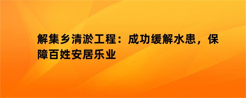 解集乡清淤工程:成功缓解水患,保障百姓安居乐业
