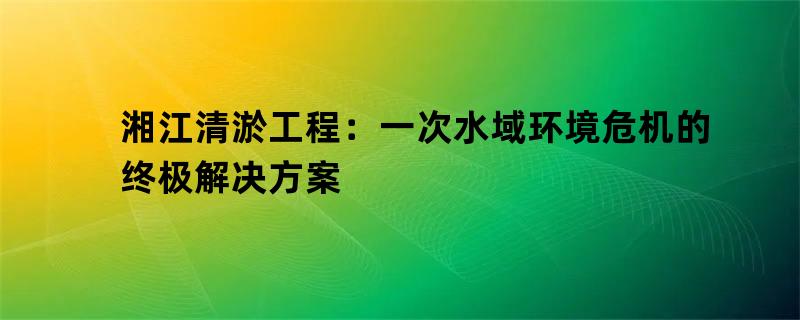 湘江清淤工程:一次水域环境危机的终极解决方案