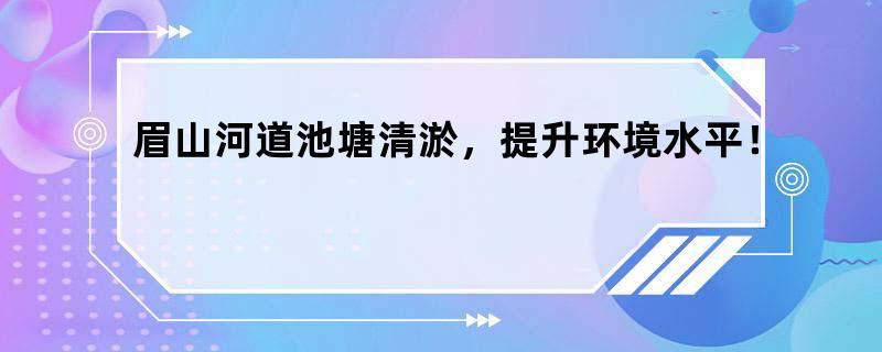 环境保护是人类社会必须关注的重要问题。随着城市化的进程不断加速,越来越多的野生动物、树木和植被面临被破坏和污染的风险。眉山市政府预算投入大量资金,加强水体环境的整治和保护。河道和池塘的清淤工程是其中最重要的一项。目的是加强国家环境和生态系统的保护,提升人民的健康和幸福感。