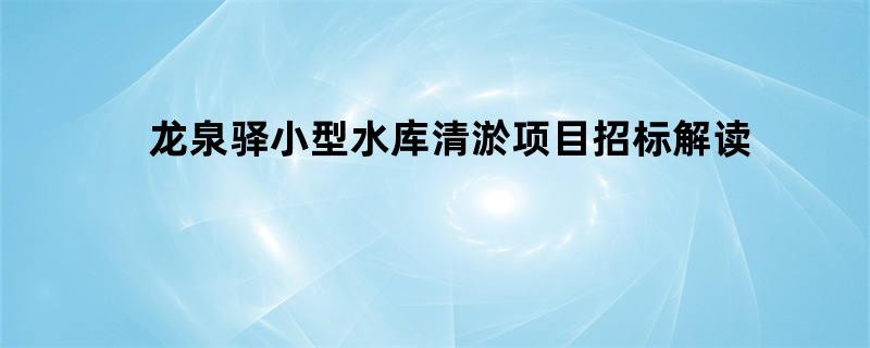 龙泉驿小型水库清淤项目招标解读