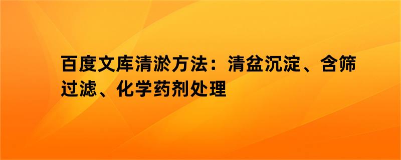 百度文库清淤方法:清盆沉淀、含筛过滤、化学药剂处理