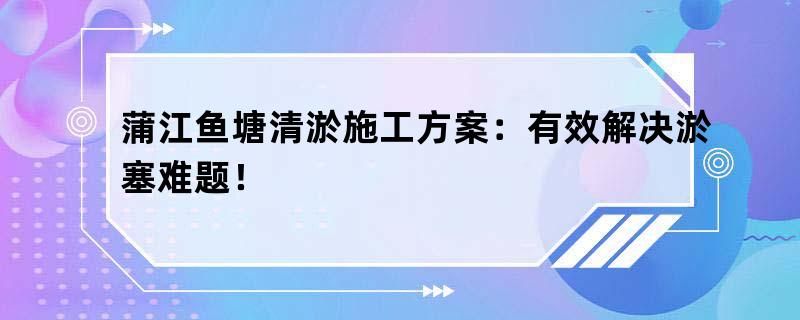蒲江鱼塘清淤施工方案:有效解决淤塞难题!