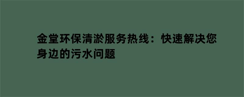 金堂环保清淤服务热线:快速解决您身边的污水问题