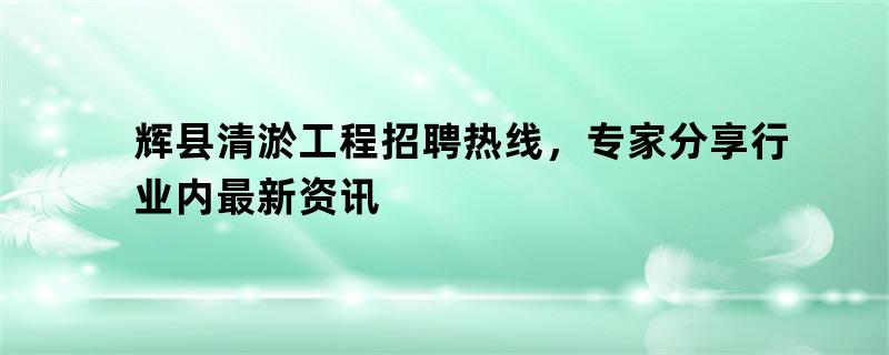 辉县清淤工程招聘热线,专家分享行业内最新资讯